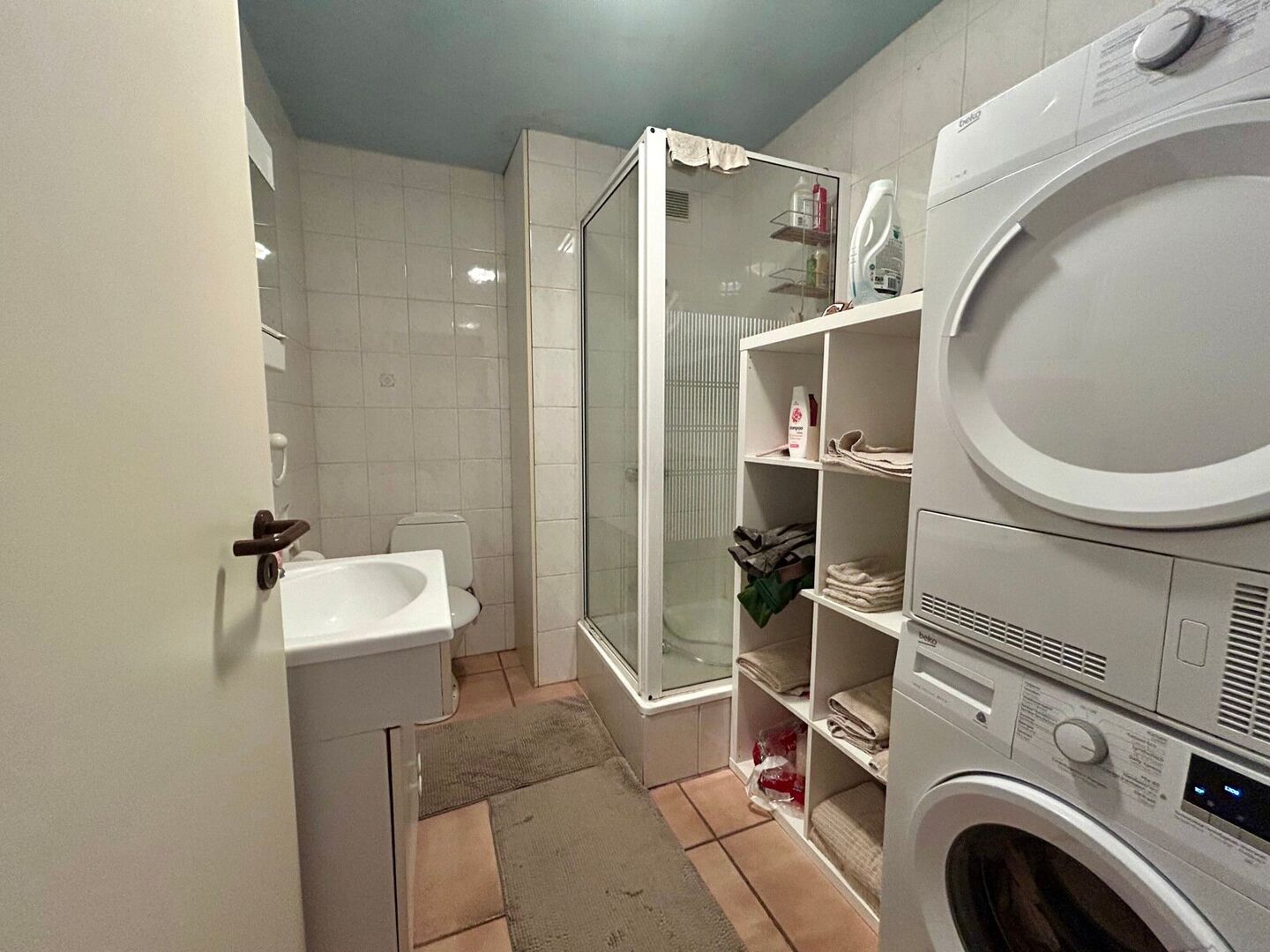 Het appartement bevindt zich op de 2de verdieping (toegankelijk via de trap) en beschikt over volgende indeling: