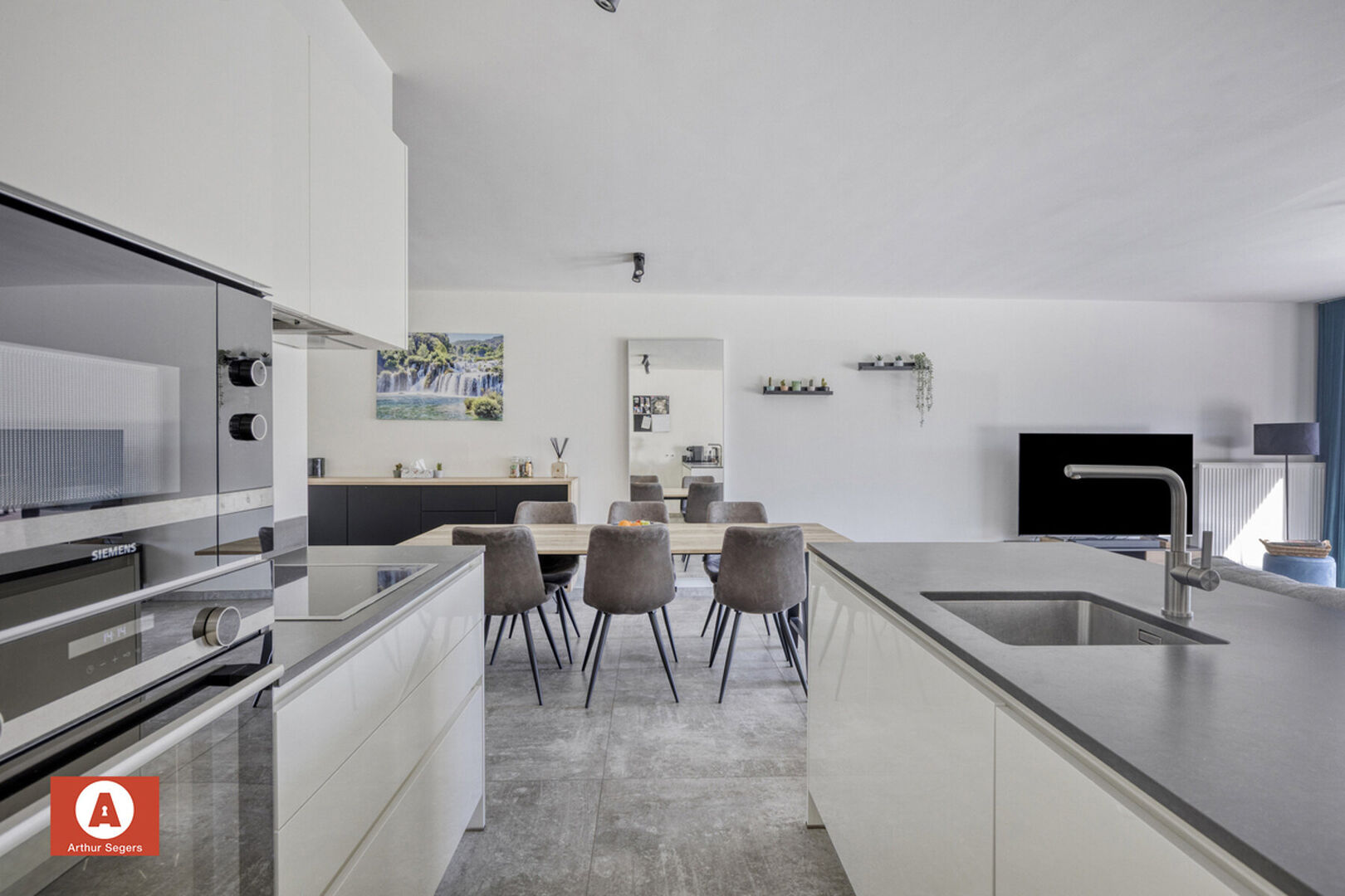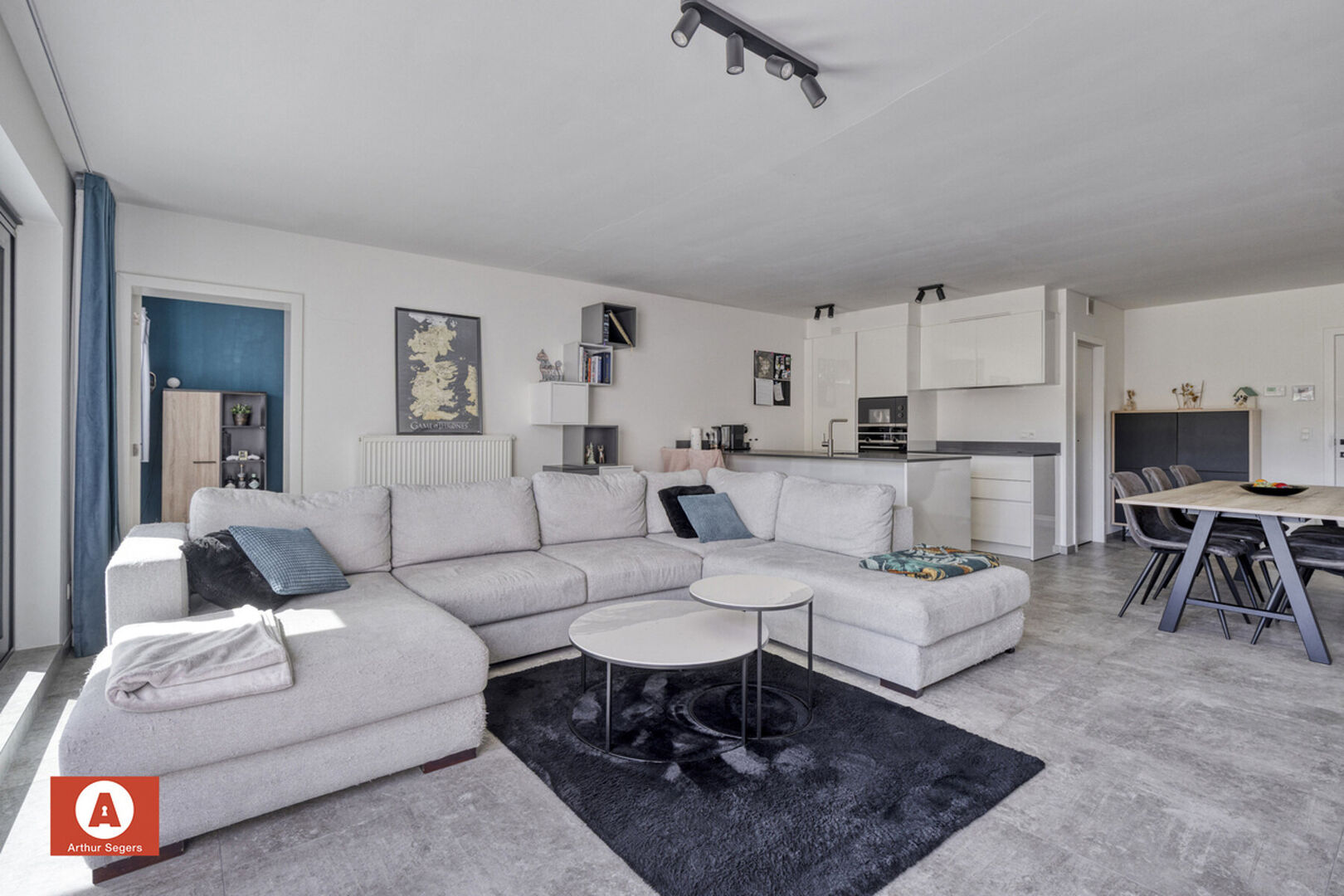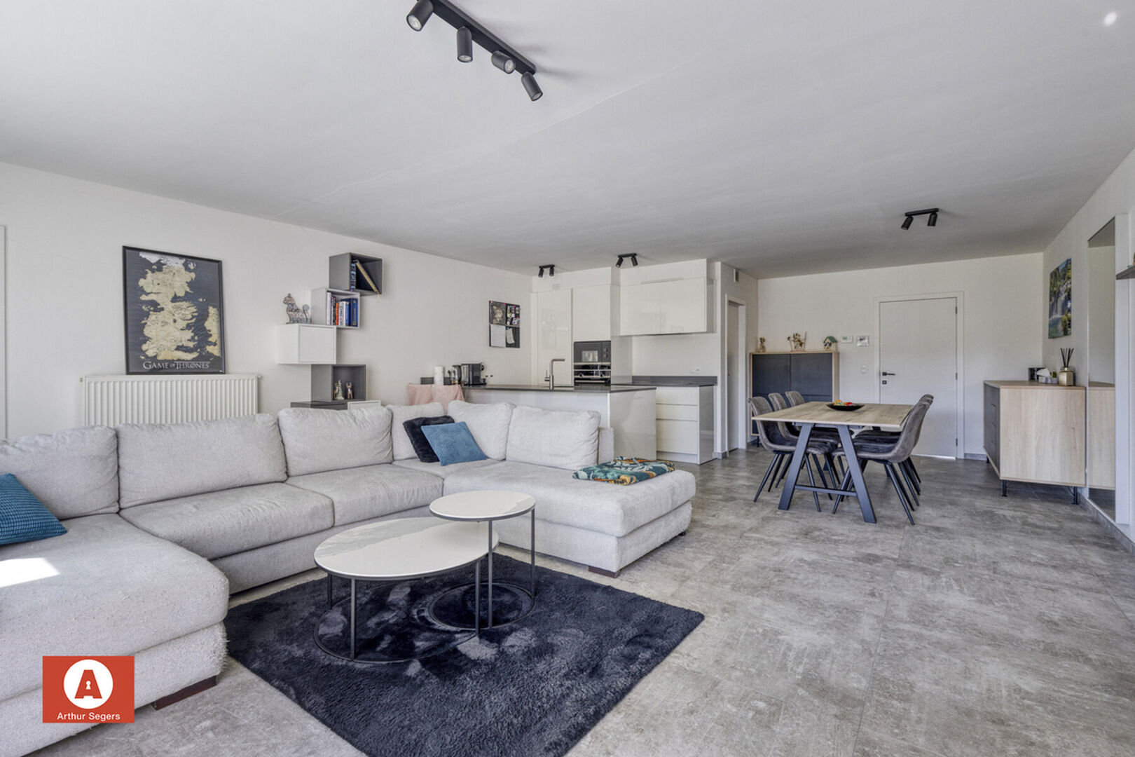 Met een bewoonbare oppervlakte van 103 m² biedt dit appartement een doordachte indeling. U komt binnen via de inkomhal met gastentoilet, waarna de riante leefruimte (± 46 m²) in het oog springt. De open en compleet uitgeruste keuken (Siemens-toestellen) vormt het hart van de leefruimte en sluit aan op de praktische was-/bergplaats. Verder zijn er 2 slaapkamers, waarvan er momenteel één als bureau wordt gebruikt, en een moderne badkamer met lavabo en inloopdouche.