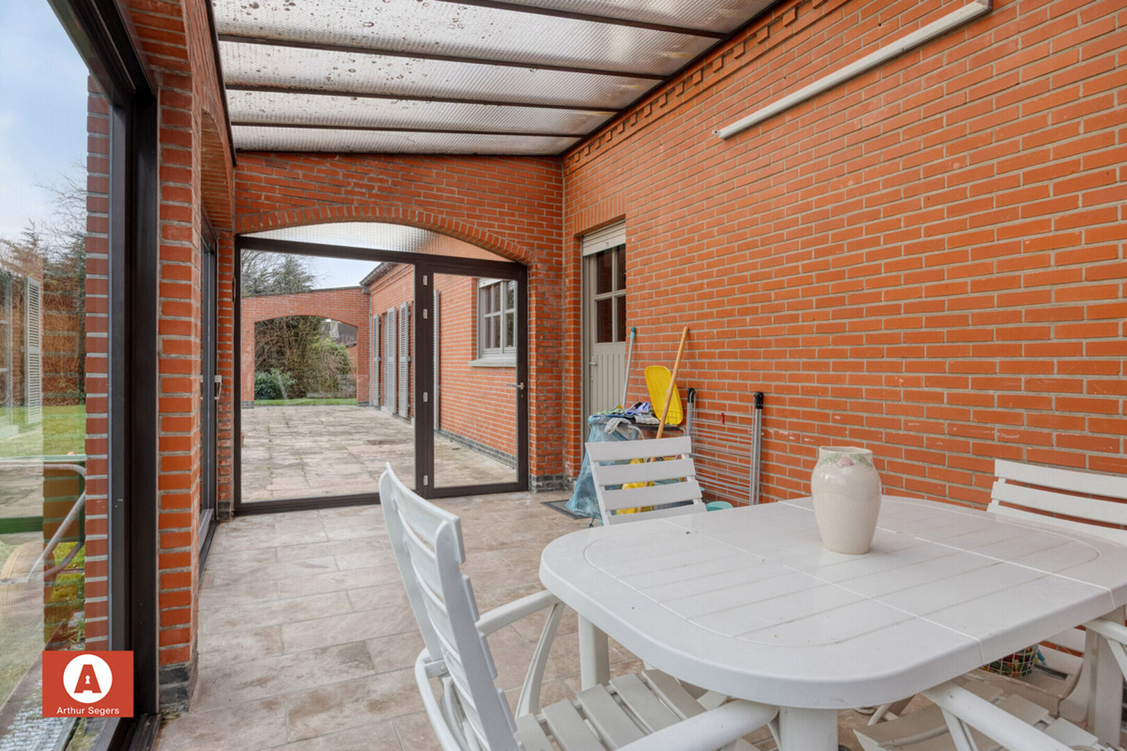 Een absolute troef is de bijzonder ruime inpandige garage/atelier, ideaal voor zelfstandigen, hobbyisten of wie extra werk- en opslagruimte wenst. D