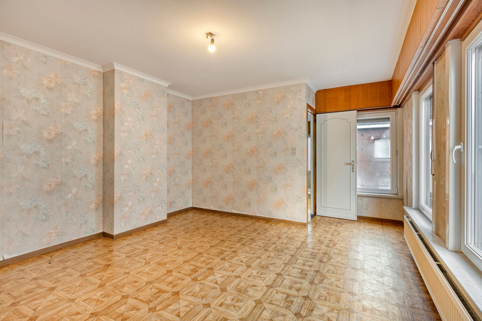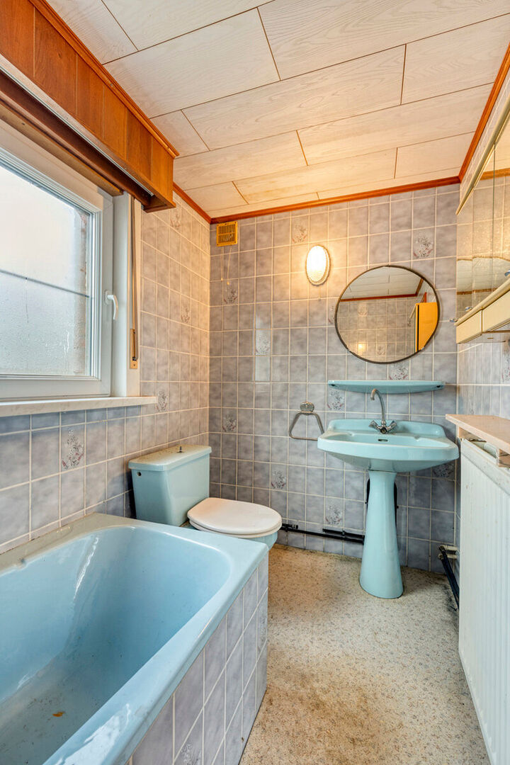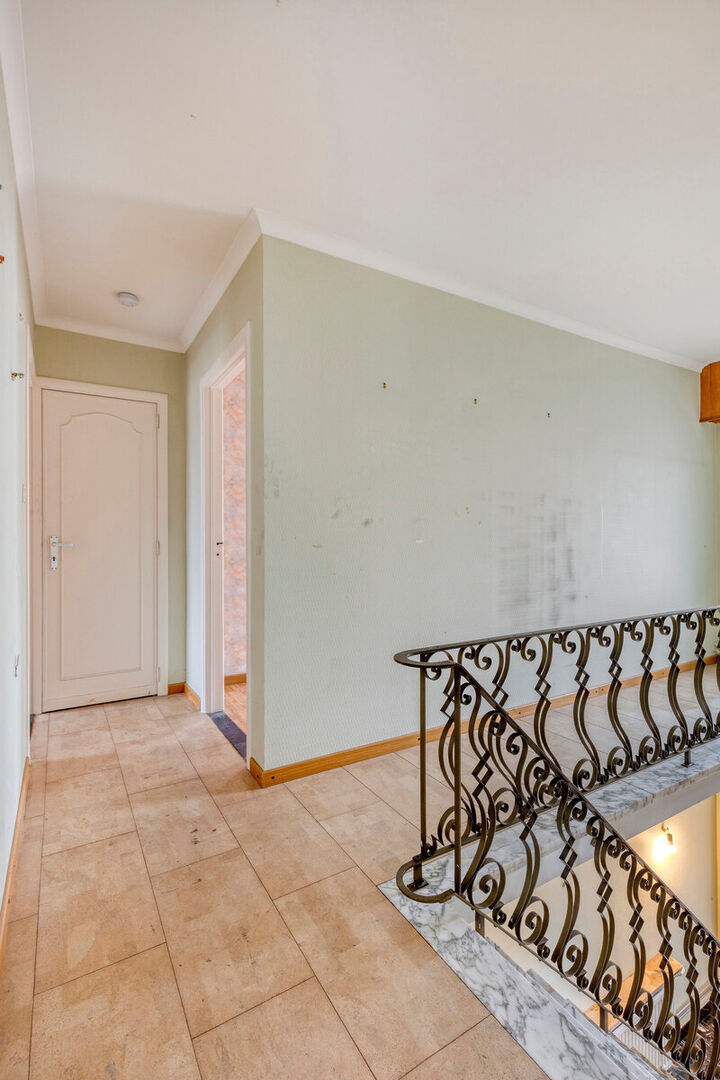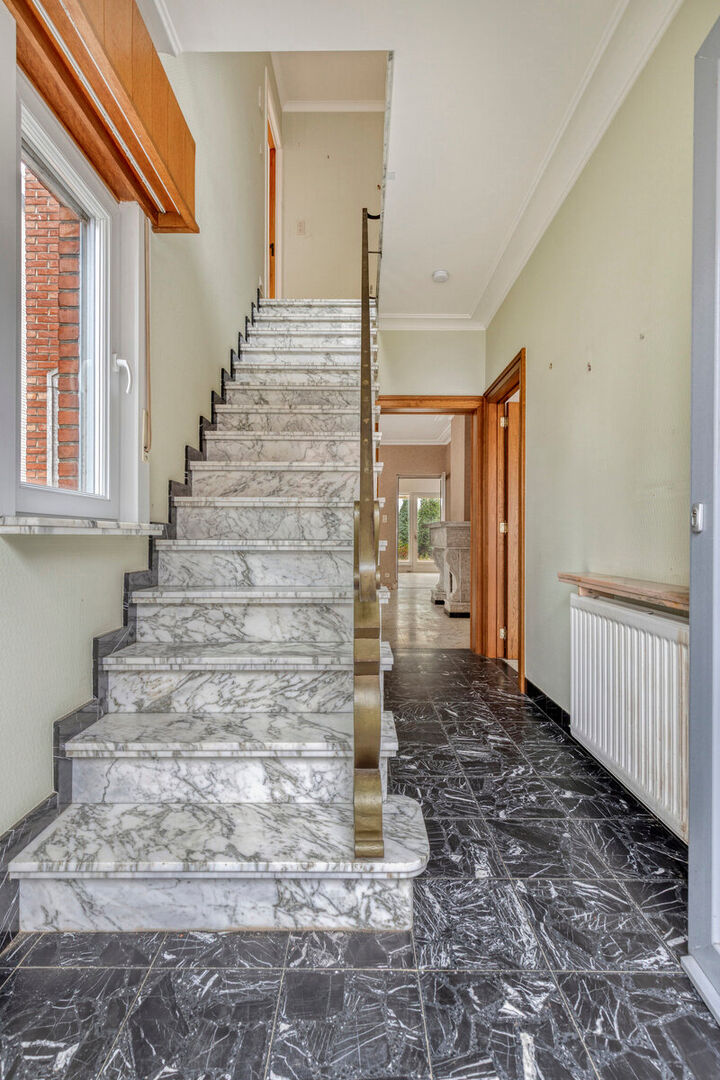 In de Mechelseweg, op 100 meter van de Vaart en op wandelafstand van het centrum van Kapelle-op-den-Bos, bevindt zich deze ruime en solide halfopen bebouwing met bijzonder veel potentieel. De woning, gebouwd in 1963, staat op een perceel van 3a 60ca en biedt een royale bewoonbare oppervlakte van 250 m². De betonnen gewelven verzekeren een uitstekende structurele basis voor renovatie. De huidige indeling omvat een inkomhal, een lichtrijke leefruimte en een afzonderlijke eetplaats, beide met toegang tot de keuken en veranda. Daarnaast zijn er een toilet en douche op het gelijkvloers. Op de eerste verdieping bevinden zich twee zeer ruime slaapkamers en een derde kamer met berging/dressing die doorloopt naar de badkamer. Een vaste trap leidt naar de grote zolder, perfect in te richten als extra kamers of bergruimte. De woning beschikt tevens over een droge kelder.